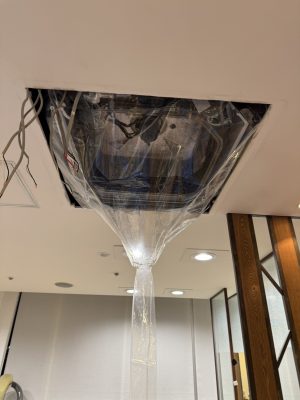「天井埋め込み型(4方向タイプ)パッケージエアコンの分解洗浄工事」