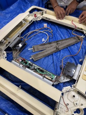 → 内部基板や配線を傷めないよう、慎重に分解清掃を行います。